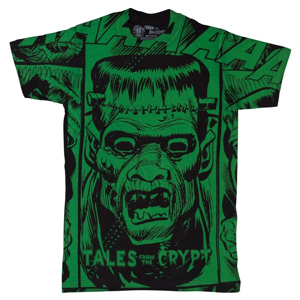 Officially licensed Tales From The Crypt Jumbo creature feature print tee featuring an all over frankenstein monster print on the front. Made by monsters in the USA.