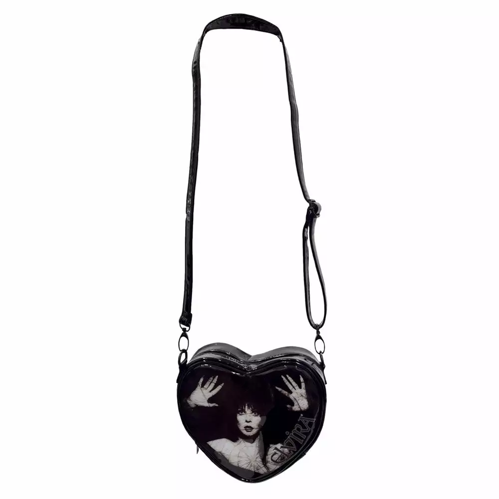Officially licensed Elvira Lace Mini Heart Purse. Wear it any way you want! Comes with removable wrist and adjustable shoulder strap, so you can use it has a wristlet, shoulder bag or crossbody. made from Shiny PU bag measures 6.75″ tall, 7.5″ wide and 2.75″ deep