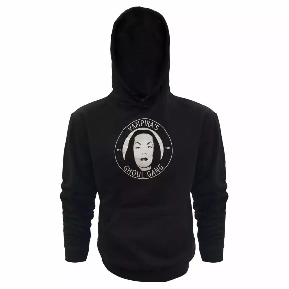 Kreepsville 666 exclusive Vampira Ghoul Gang hoody, 80% cotton/ 20% polyester black pull over hoody with official ‘Vampira’s Ghoul Gang’ print on front.