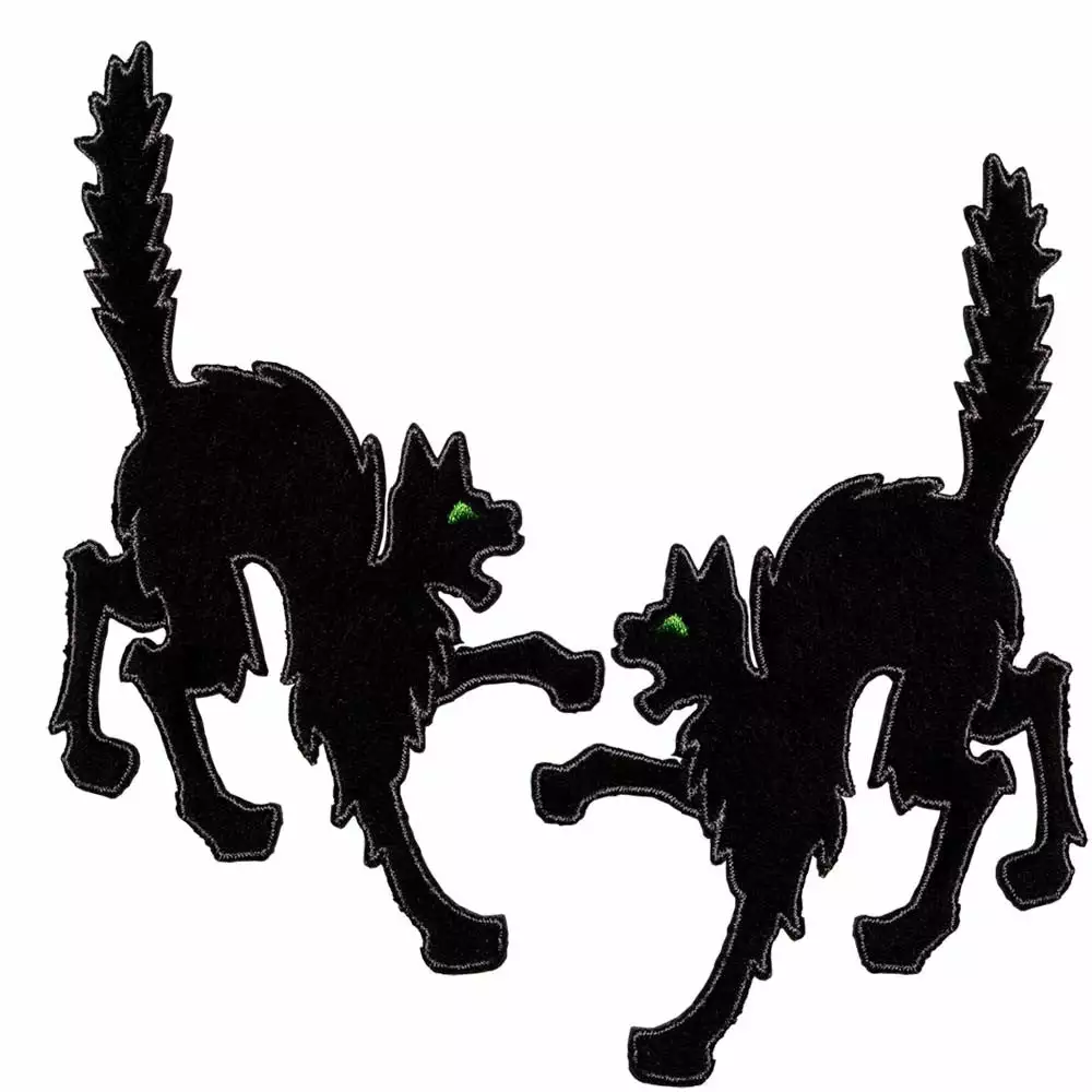 Black Cat patches by kreepsville 666,soft fuzzy fur with ebroidered detail iron on patches, sold in pairs, each cat size approx 2.5 in (6.5cm) high
