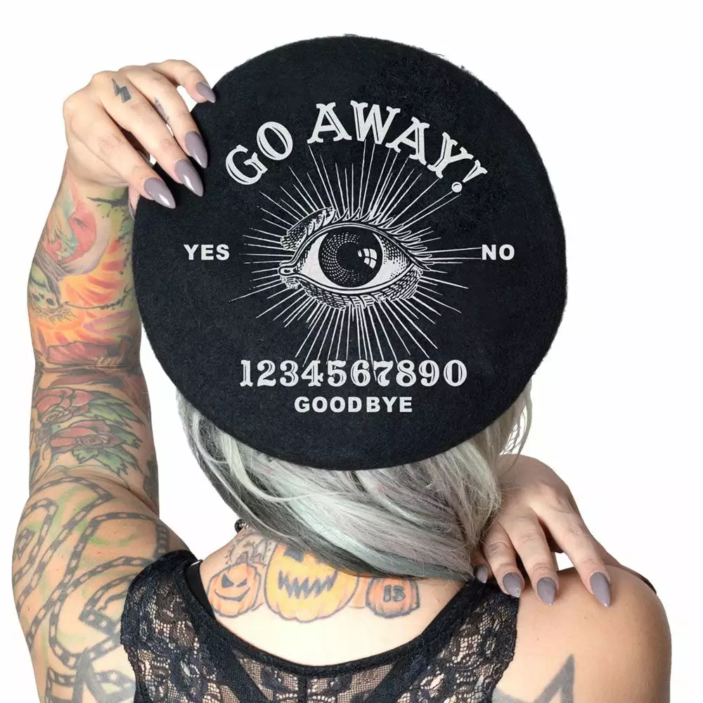 Be the first to review “Kreepsville Go Away Ouija Black Beret Hat” Cancel reply