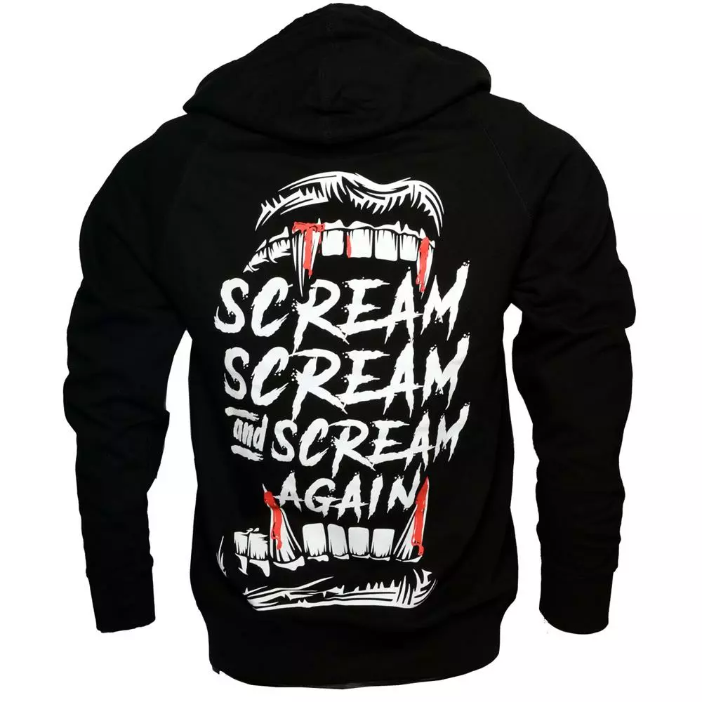 Kreepsville 666 Scream, Scream and Scream again unisex hoody, lightweight zip up hoody with Vamp teeth front logo and Scream backprint. Hoody 80% cotton, 20% polyester. Made in the USA by Kreepsville.
