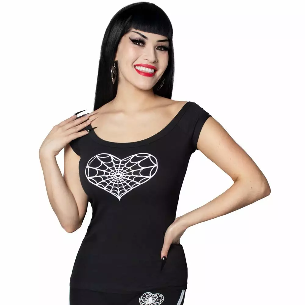 Be the first to review “Kreepsville Spiderweb Heart Shoulder Top White” Cancel reply