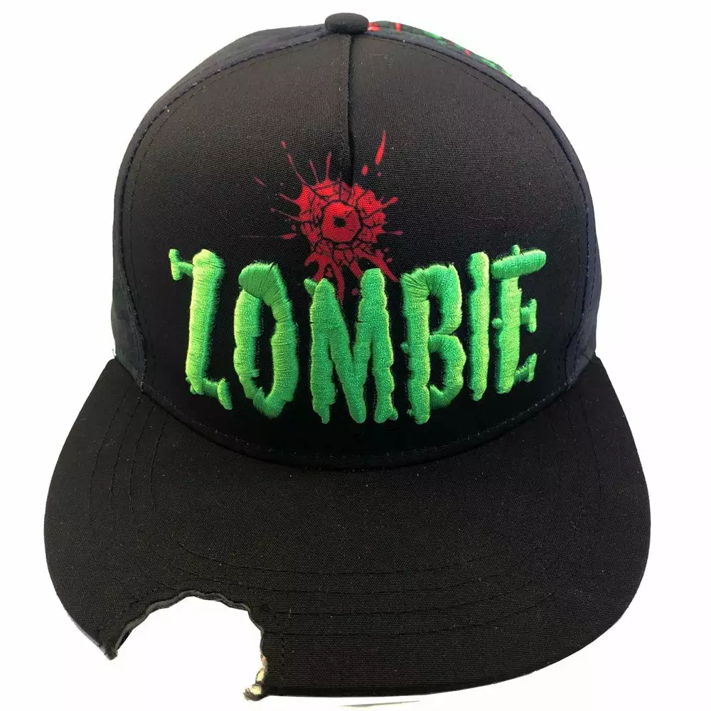 Die hard fan of Team Zombie? Show your dead-ication with our Zombie Bite Sublimation Baseball Hat featuring a fresh bite from our zombie horde on the brim, embroidered zombie lettering and printed gunshot wound on the front and sublimation exit wound on the back.